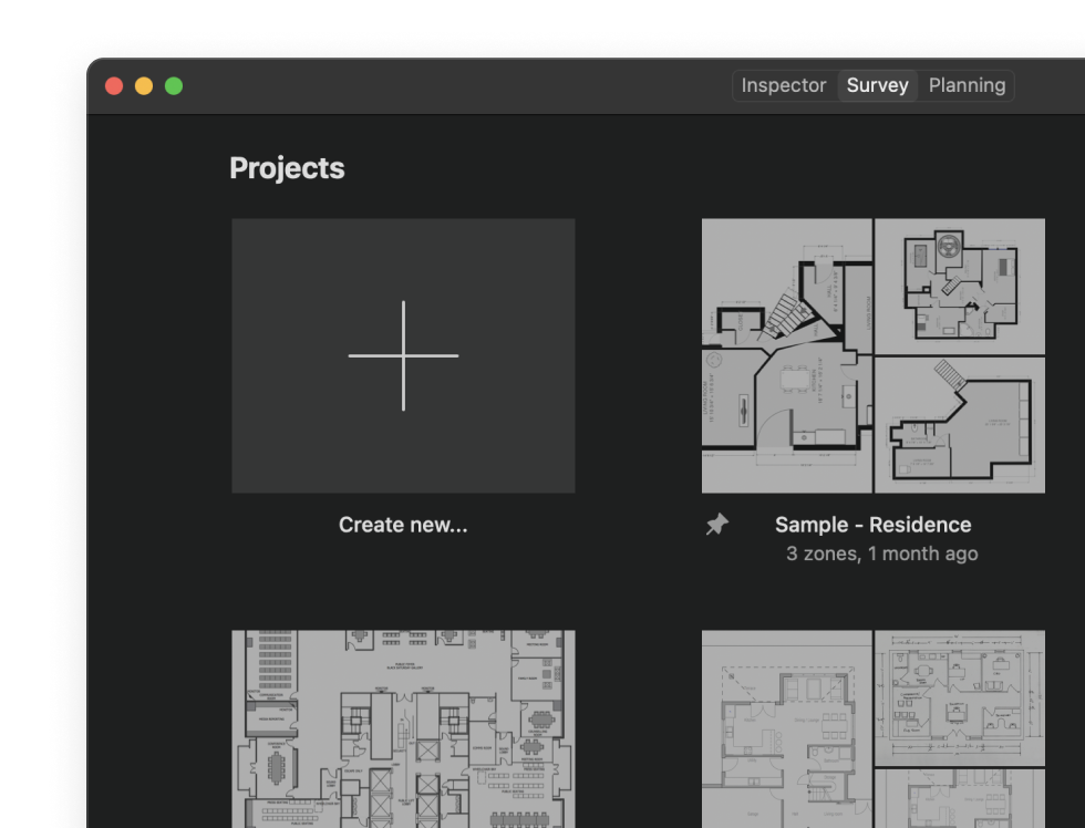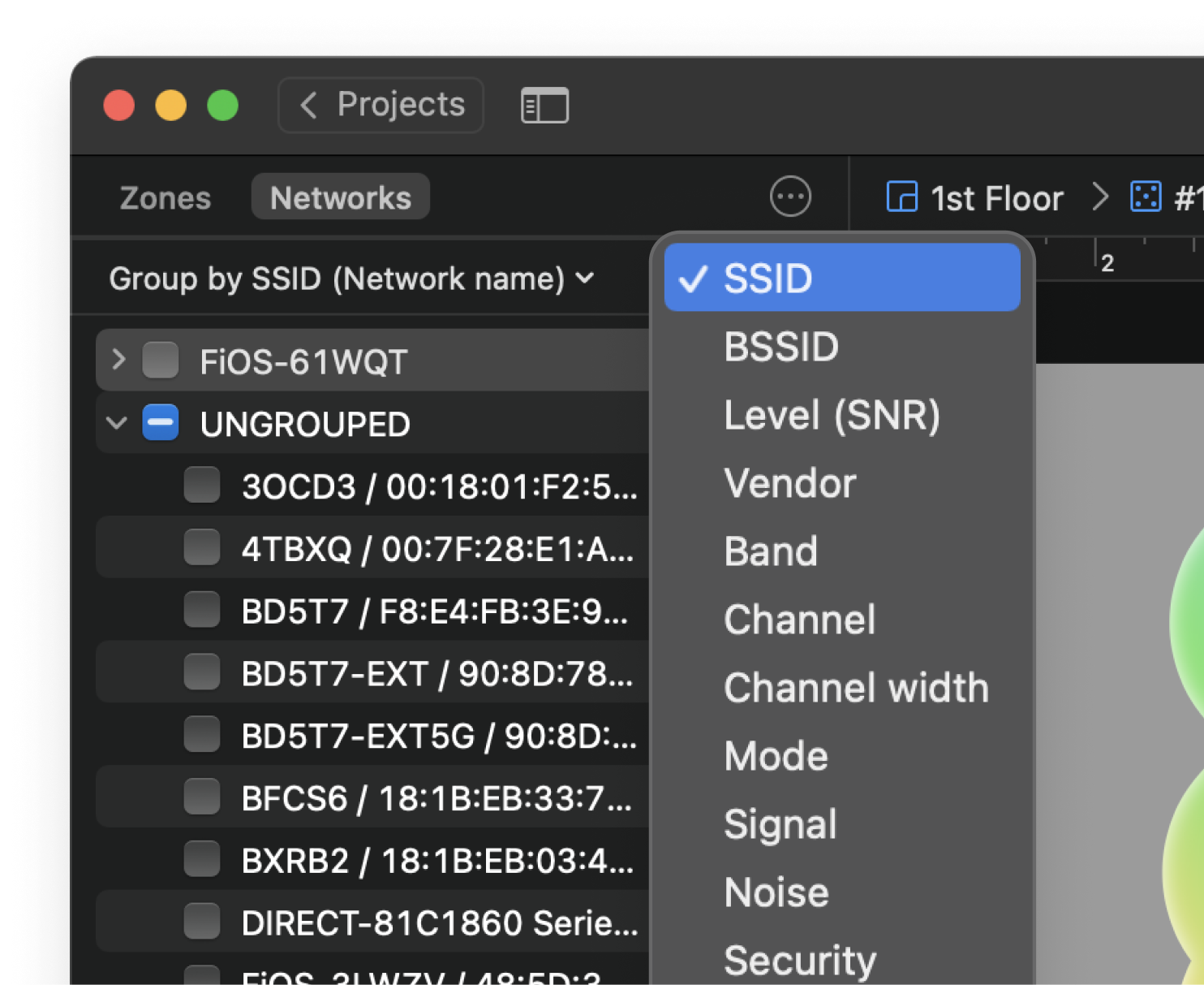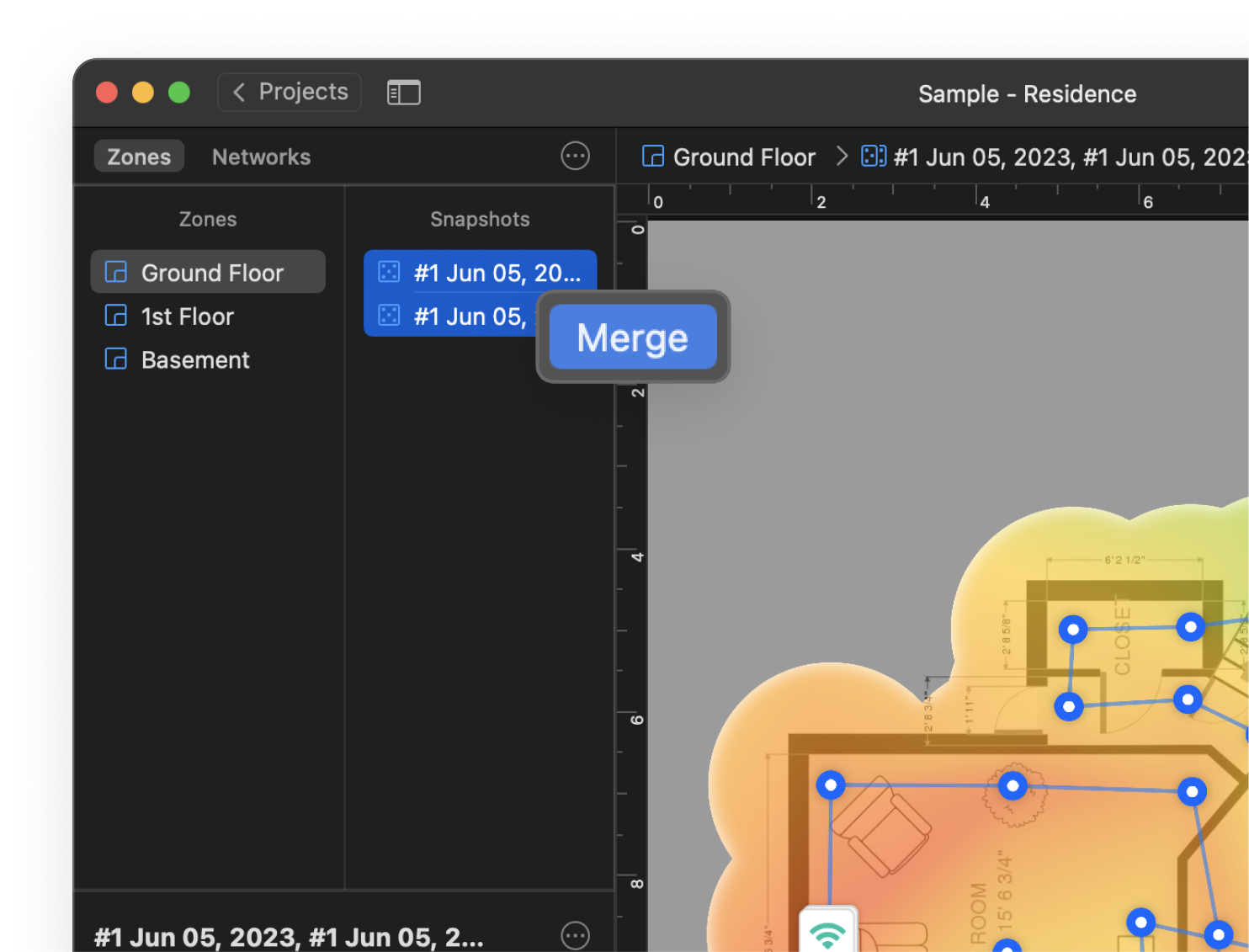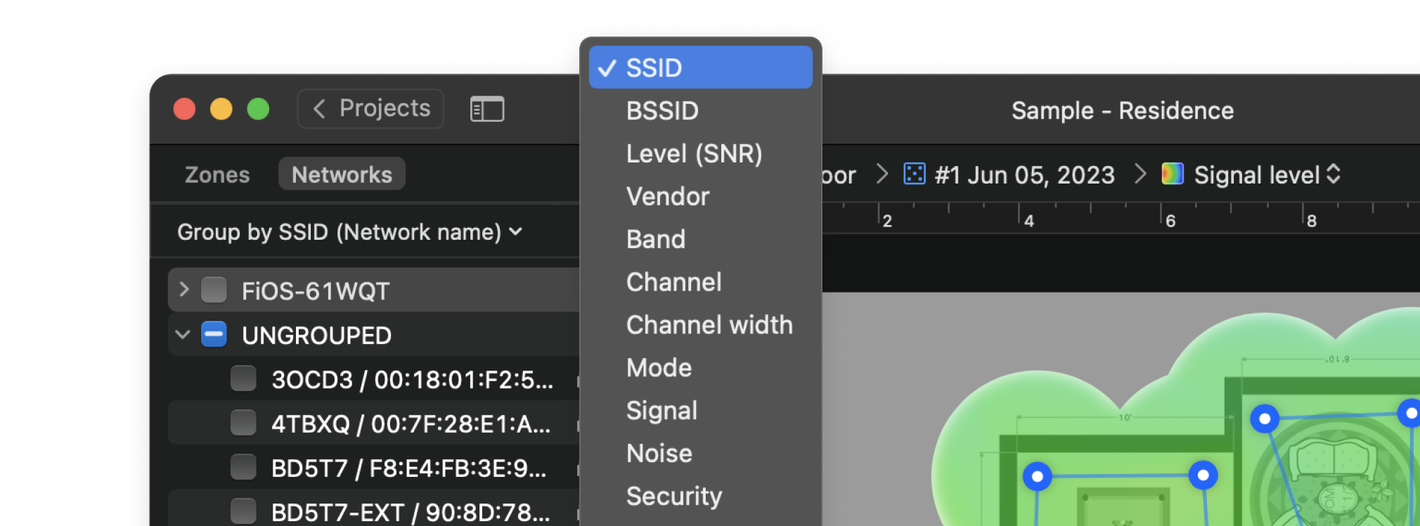 Your projects are comprehensively laid out with their snapshots. Access them quickly through NetSpot's Open Recent menu, use sorting and filtering to find any project quickly.