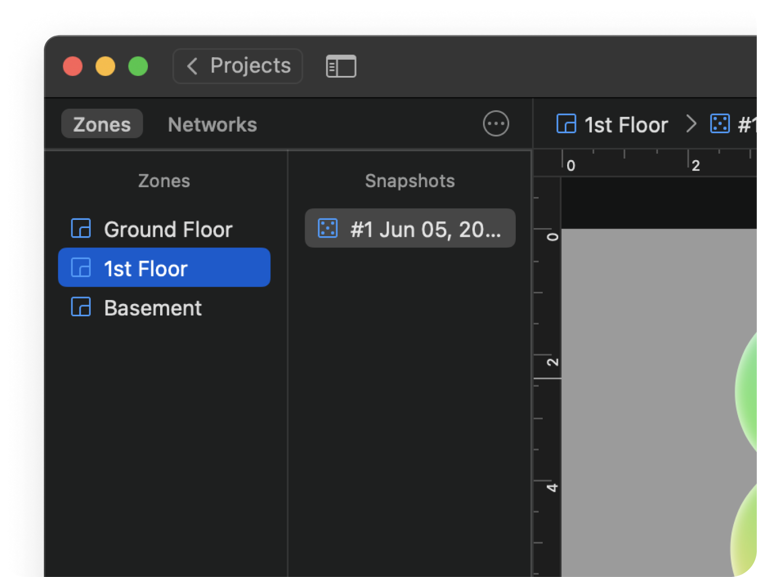Create multiple zones per project to represent different areas, floors, levels, etc.