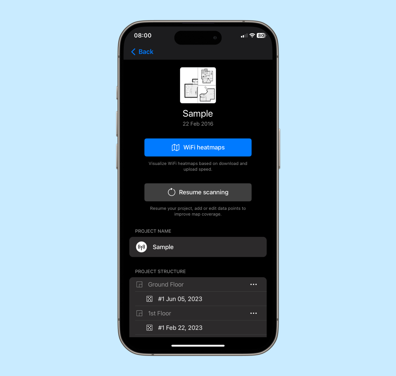 Step 9. You have an option to either generate Upload or Download speed heatmaps (tap WiFi heatmaps) on your iOS device or resume scanning if you feel like you need to cover more space.
