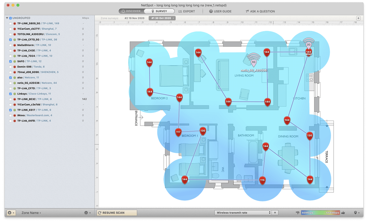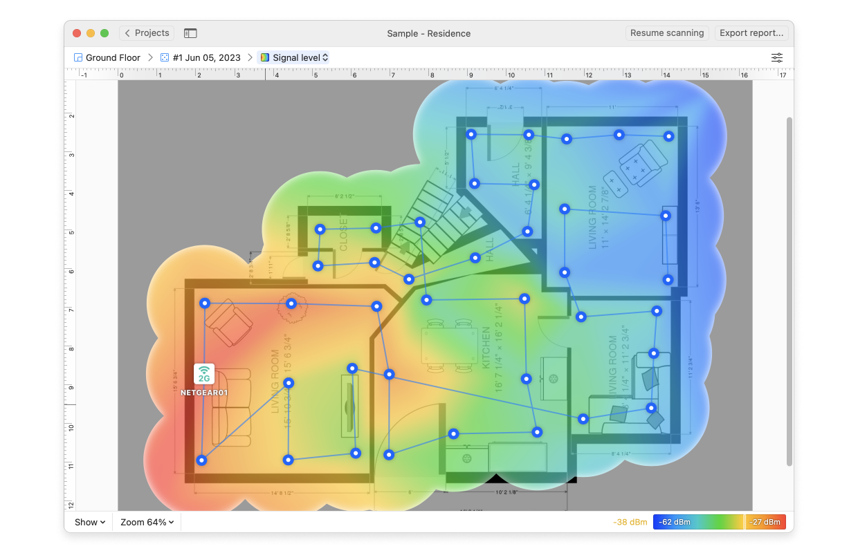 The signal level represents the strength of your WiFi and with its visualization, you’ll easily see the weaker areas that need troubleshooting and can decide on the steps to be performed toward improvement. Here you can read about troubleshooting the low signal level.